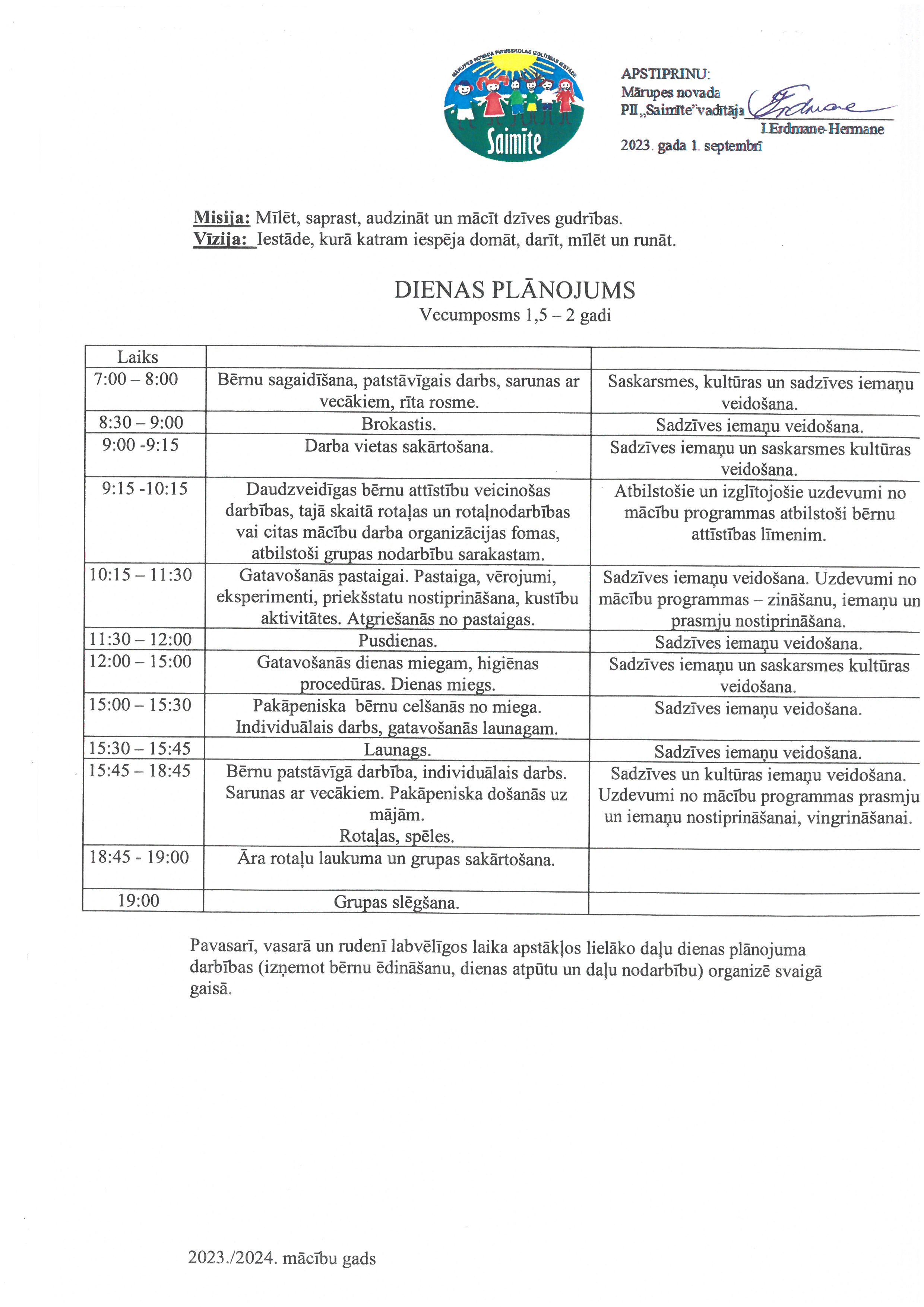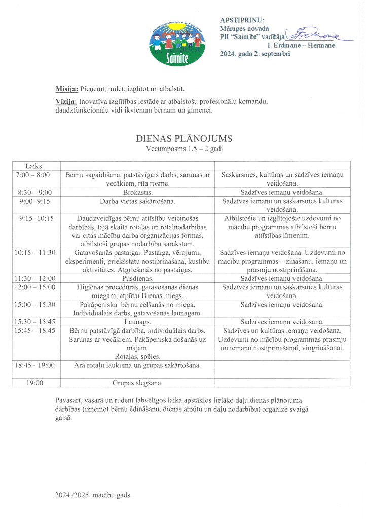 Katrai grupai detalizēts dienas režīms pieejams grupās.
