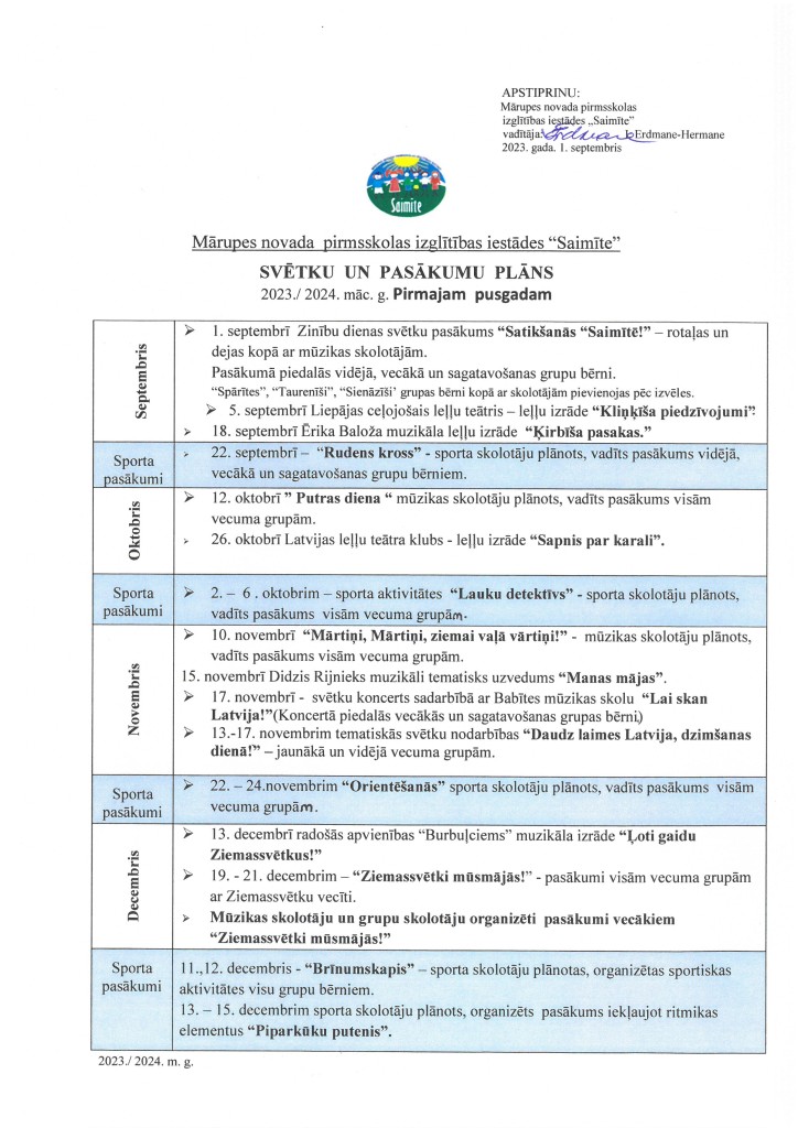 Svētku un pasākumu plāns 2025./2026. mācību gada 1. pusgadam