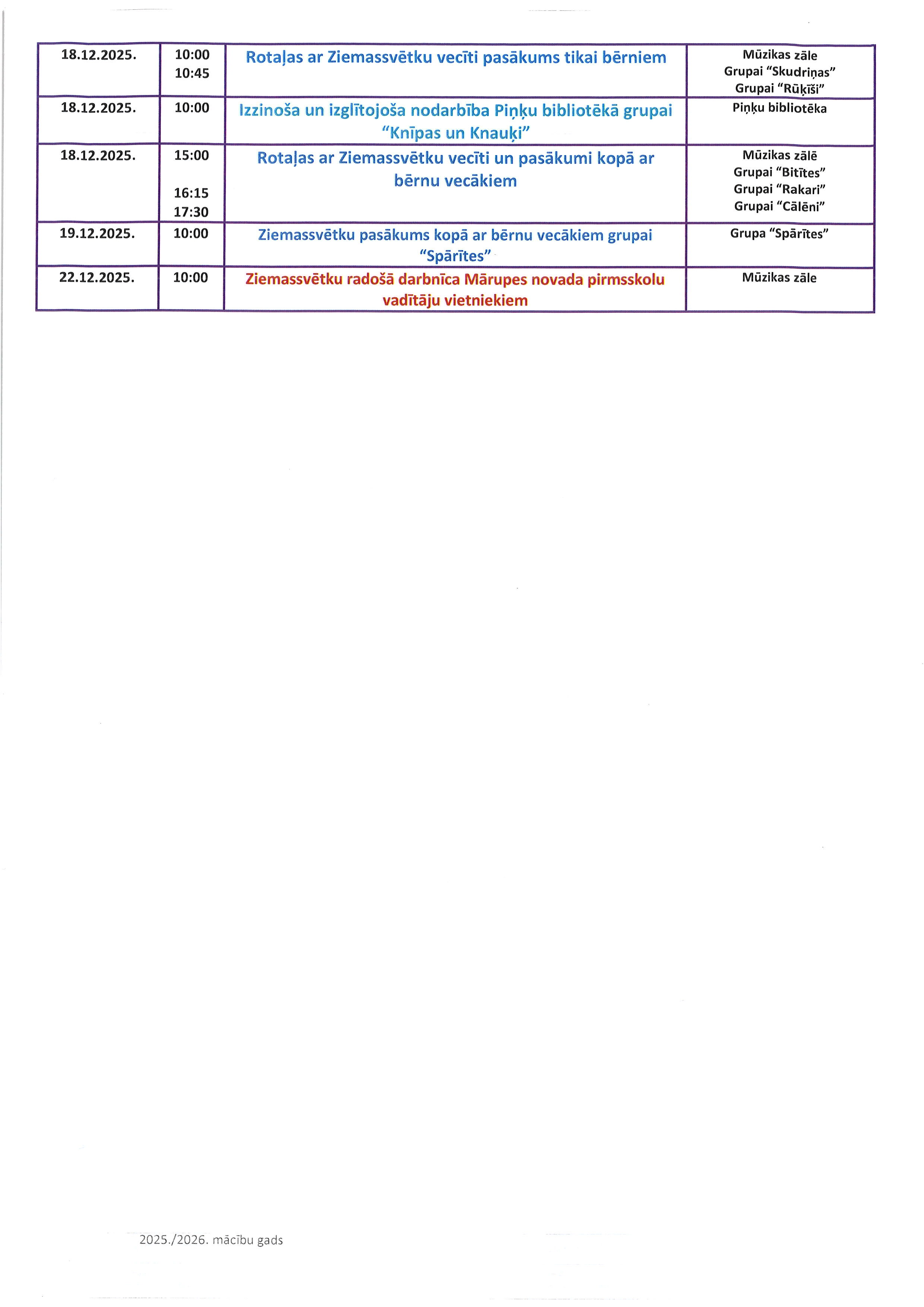 Plānotie pasākumi pirmsskolas izglītības iestādē “Saimīte” – Decembra mēnesī.