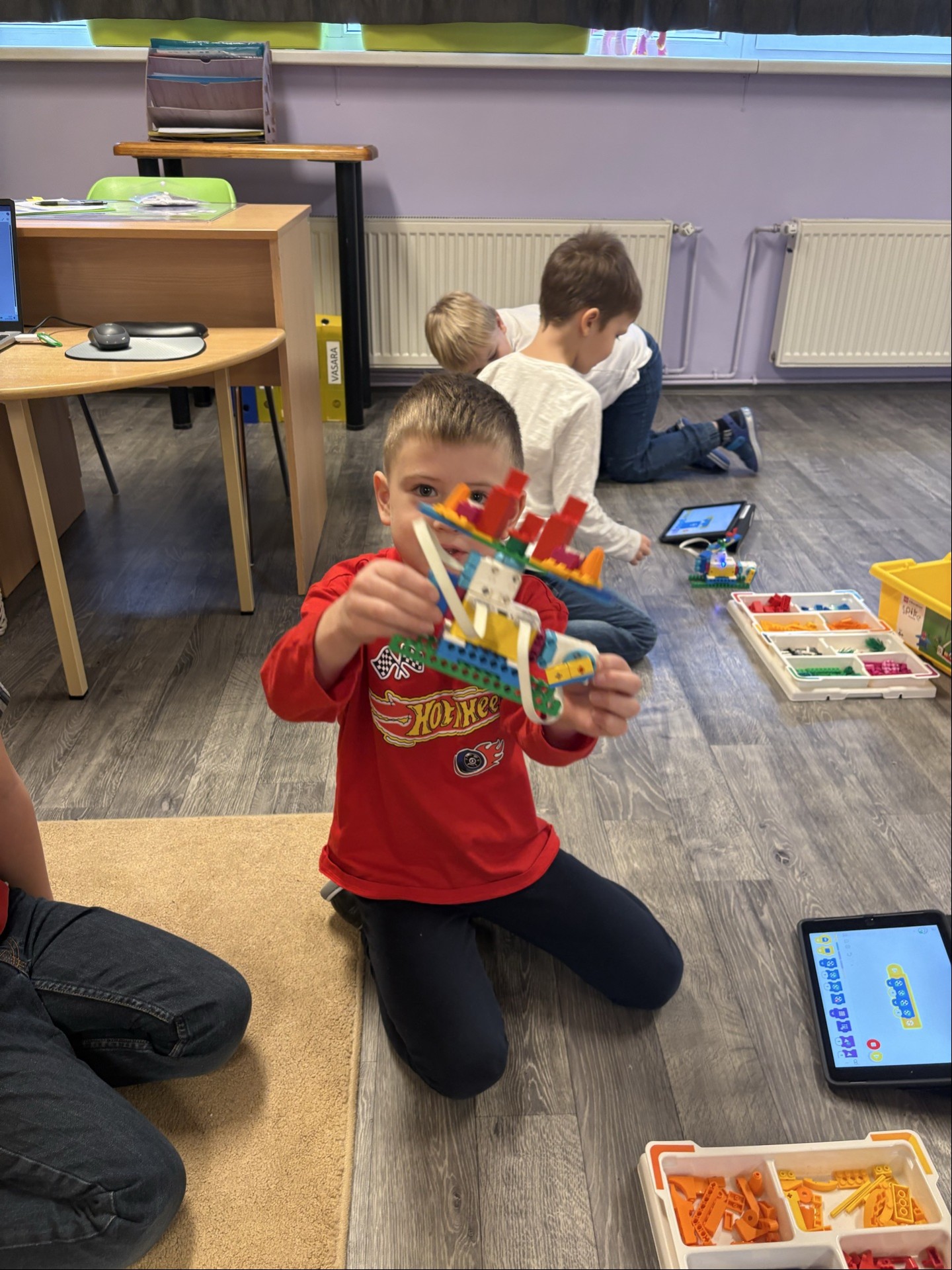 Nodarbības gaita: Norise sākas ar spēli „Vai zini!”, kur izglītojamie izsaka pieņēmumu par skaitu attēlos, argumentē savu atbildi un pārbauda to. Praktiskajā daļā norises vadītāja vadībā izglītojamie konstruē mehānisku robotu Helikopteru. Katrā konstruēšanas solī bērni saskaita un nosauc nepieciešamo detaļu skaitu, nosaka stienīšu un plāksnīšu izmērus, saskaitot to caurumus vai pumpiņas; saviem vārdiem argumentē izteikto pieņēmumu un detaļu izvēli. Noslēgumā izglītojamie piedalās refleksijā, novērtē savus pieņēmumus par shēmas attēlos un detaļu kopās redzēto un atbild, ko saprata, iemācījās un uzzināja.