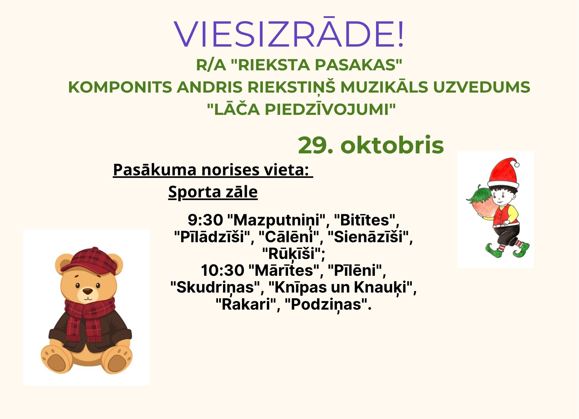 Pirmsskolas izglītības iestādē “Saimīte” oktobra mēnesī plānotās viesizrādes.