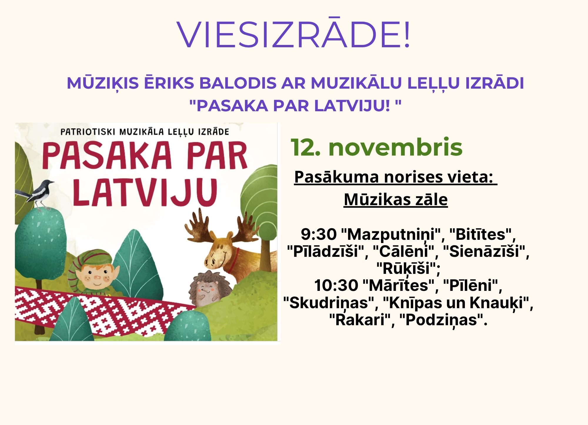 Novembra mēnesī plānotās viesizrādes.